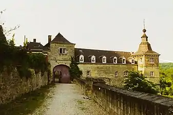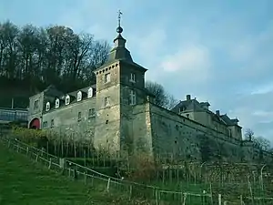 En 1465, le château fut détruit par les gens de Liège durant la Guerre de Liège. Les dépendances et la tour d'angle visible au premier plan furent construites en 1611, dans le style mosan[1].