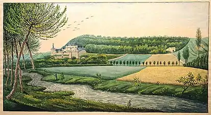 Dans la vallée en face du château coule la rivière Geer et est un jardin baroque, reconstruit à la conception originale[6].