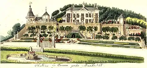 Le bâtiment principal fut construit en 1698 par le général-baron Daniel Wolf van Dopff, seigneur de Neercanne, à cette époque 'gouverneur militaire de Maastricht'[4]. Tous les bâtiments actuels sont construits à partir de marne[5].