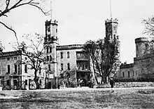"Le Palais des cavaliers" a aussi été victime de dommages collatéraux en 1945, toutefois les dégâts restent limités, de sorte qu'il put être reconstruit par la suite. Le portail principal et sa clôture, qui initialement se tenaient devant le château, ont été récupérés par le zoo de Chorzów pour son propre usage. En 2006, pour le centenaire de l'existence du "Palais des cavaliers", il fut demandé au zoo de restituer le portail et sa clôture, ce qui n'aboutira pas.