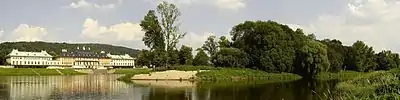 Les premières traces de l’existence du château remontent aux alentours de l’an 1400. Dès le XVIe siècle, le château de style Renaissance avait attiré l’attention personnelle des princes-électeurs de Saxe. Après plusieurs tentatives d’acquisition infructueuses, c’est le prince-électeur Jean-Georges IV qui réussit à acheter le domaine et à en faire ainsi une propriété de la Couronne qu’il donne à sa maîtresse Magdalena Sibylla de Neidschutz. À sa mort, le château passa entre les mains de son frère Frédéric-Auguste le Fort, électeur de Saxe et peu après roi de Pologne sous le nom d’Auguste II.