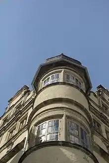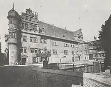 Les façades apparentes sont ornées de pignons à volutes très pentus et une tourelle d'angle. Dans la cour se trouve une autre tour abritant un escalier à vis, à laquelle on accède aujourd'hui via l'orangerie de l'hôtel, ainsi qu'un porche d'entrée somptueusement décoré, avec niches et pilastres. À l'intérieur, la partie conservée et restaurée est en bois, avec poutres apparentes au plafond, boiseries et de riches marqueteries. La première rangée de fenêtre était au moment de la construction celle du premier étage, à 3,50 m de hauteur ; en effet, il y avait à l'époque jusqu'à ce niveau les remparts de la ville. Une autre curiosité du chateau, sont les portes de la salle de la cheminée, aujourd'hui utilisé comme lounge. Elles ont été au moment de la construction directement livrés du Zwinger.