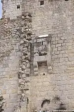 - un escalier permettant d'accéder au chemin de ronde, au fossé et aux tours de la prison et tour du puits, toutes deux ruinées.