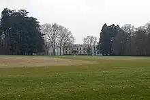 Grand hémicycle d'entrée, conservant ses pavillons et le portail.