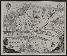 - Vue du château de Rouen en 1575, Pourtraict de la ville de Rouen, François de Belleforest, Bibliothèque municipale de Rouen.