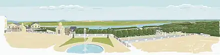 Restitution de la vue sur le vallon de Sèvres depuis les terrasses hautes des jardins du château de Saint-Cloud, vers 1700.