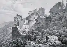 Le château est finalement détruit en 1680 par les troupes françaises dirigée par Monclar et Melac[réf. nécessaire], sur ordre de Louis XIV et, après la Révolution, les vestiges sont achetés par la famille de Dietrich. La ruine et la forêt environnante appartient actuellement à la famille de Pimodan.