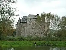 Le château est bâti principalement en pierre calcaire sur une base rectangulaire d'environ 30 m sur 25 m entourant une petite cour intérieure. La structure des différents éléments constituant le château est complexe. Le bâtiment est ponctué aux angles nord-ouest et sud-ouest de tours circulaires datant du début du XVIe siècle, l'une basse et robuste, l'autre haute et mince.
