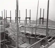 Vers la fin de la Seconde Guerre mondiale, les travaux s'interrompirent pour une bonne dizaine d'années. La reconstitution définitive du château féodal reprit de 1954 jusqu'aux années 1970. Elle était régulièrement en butte à la pénurie de pierre et aux menaces de perdre les subsides.