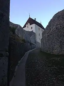 De 1994 à 1996, un nouveau chantier permet de moderniser l’accès au château et de sécuriser les collections. Un concours d’architecture prime le projet du bureau GD architectes qui propose de dissimuler la nouvelle entrée derrière un nouveau mur composé d’un monumental appareil de pierre, alors qu’une réserve d’eau et un abri pour les biens culturels sont enfouis sous la terrasse[12],[13],[14]. En été 2020 est inauguré un jardin d’inspiration médiévale qui s’étend sur quelque 8 000 mètres carrés en terrasses et qui s’articule en neuf thèmes émanant de la littérature et de la botanique médiévales.