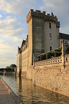 Suivant une disposition originale, l'édifice tout entier se voit alors isolé du reste du domaine par une douve. Tout en rappelant de manière symbolique l'importance militaire passée de l'édifice, le percement de ce fossé sert à remblayer les terrasses des jardins, formant ainsi une sorte de socle accessible par un pont-levis, d'où l'édifice peut dominer le panorama offert sur la vallée où coulent le Cher et la Loire.