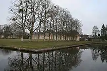 Le bâtiment est construit en brique et pierre comme les réalisations de la première moitié du XVIIe siècle, mais dans un style original, qui apparaît comme une sorte de sublimation de la grande architecture classique. Le plan dessinait un trapèze très ouvert. Les pièces de réception étaient situées au rez-de-chaussée, comme dans la plupart des maisons de campagne, les appartements d'invités (dits « à donner ») occupaient le premier et le second étage. Le pavillon central et les deux pavillons situés à l'extrémité des deux ailes étaient couverts de toits en dômes sur plan carré.
