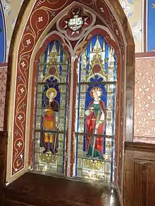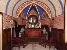 Le château de la Grange Fort possède une chapelle. Elle a été arrangée par les Matharel, raison pour laquelle on retrouve une influence très italienne, comme cela est aussi le cas dans le château en lui-même. Ces influences italiennes dont les peintures au plafond et aux murs sont caractéristiques, sont mêlées au style roman que l'on peut reconnaître aux soubassements en bois et en forme de "pli de serviette", présents dans d'autres églises de la région. Le vitrail du mur droit de la chapelle représente Victor de Matharel et Lucia, son épouse. Victor tient un poignard et une lance tandis que Lucia tient une épée, probablement symbole de la défense de leur château et de leur terres. Au-dessus d'eux se trouvent les armoiries de la famille di Matharelli auxquelles on peut distinguer en arrière-plan la croix de l'ordre de Malte, signifiant donc que la famille le servait. Tous les membres de la famille ayant servi cet ordre sont d'ailleurs représentés un par un sur les murs de l'escalier principal du château.