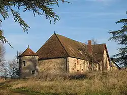 Les communs flanqués de deux petites tours rondes s'alignent au sud.