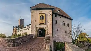 De à , Martin Luther, alors au ban de l'Empire fut mis à l'abri dans le château par Frédéric le Sage. Ce fut pendant cette période que sous le nom de Junker Jörg (chevalier Georges), il traduisit le Nouveau Testament et une partie de l'Ancien Testament en allemand ; ce Nouveau Testament paru en 1522 puis la Bible de Luther complète parue en 1534 allaient être très largement diffusés en Allemagne et constituer le point de départ d'une révolution culturelle et religieuse en Allemagne et au-delà[2].