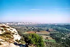 Le site du château des Baux offre également un superbe panorama typiquement provençal : les oliveraies, la garrigue, les Alpilles, les villages alentour (Maussane-les-Alpilles, Le Paradou). Par temps clair, la vue s'étend jusqu'à la mer Méditerranée.