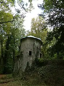 Au nord-est, sur le mur d'enceinte du parc du château, se dresse une élégante échauguette du XVIe siècle[14].