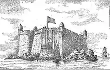 Les bourgeois de la ville entreprennent la construction de la forteresse. Elle se compose d'une tour d'artillerie - la Tour Française peut-être due à l'architecte de la Renaissance Philibert de l'Orme, et de canonnières situées au ras de l'eau et d'une enceinte haute de 6,5 mètres[6].