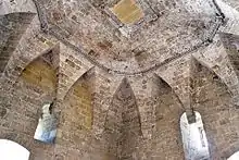La voûte qui recouvre la salle est composée de douze arcs brisés suspendus, réunis par une fine charpente carrée à motifs phytomorphes ; aux quatre coins, dans les espaces des arcs, se trouvent quatre éléments décoratifs en coque. Elle a probablement été construite au XVIe siècle.