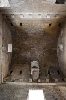 Du côté sud de la cour se trouve l'accès à la Salle du four, d'où l'on descend dans un petit sous-sol, utilisé autrefois comme prison, sur un mur duquel sont sculptées deux rondeurs qui, selon la légende, reproduisent les seins de Bianca Lancia, amante de Frédéric II de Souabe.