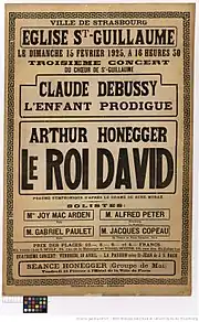 Un an après, en 1949, le chœur présente La Danse des morts et Le Roi David (1949) d'Arthur Honegger. Il enregistre sous son nom anglais, Choir of Saint William's Strasbourg, deux disques, sous le label Decca Records, avec trois extraits du Roi David : « Pitié de moi, mon Dieu », « De mon cœur jaillit un cantique » et « Je fus conçu dans le péché »[27]. Le chœur chante également Le Martyre de saint Sébastien (Debussy).