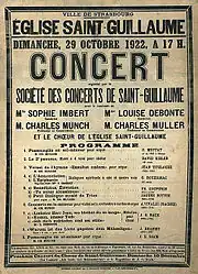 Le , Ernest-Geoffroy Munch, fils d'Eugène Münch, chef de l'Orchestre municipal de Strasbourg et organiste à l'église Saint-Guillaume, décède. Lors de ses obsèques le , le chœur chante des extraits du Requiem allemand de Brahms, l'orchestre joue la Marche funèbre de la 3e symphonie de Beethoven et le chœur termine par le chœur final de la Passion selon saint Jean.