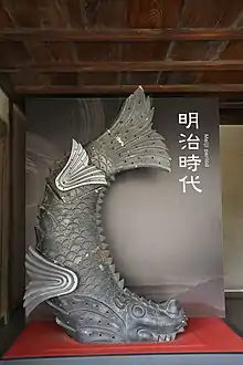 - Les shachi-gawara (鯱瓦), une variante d'un des neuf fils du dragon, chīwěn, de la mythologie chinoise, connu sous les appellations Shachihoko, ou bien encore Kinshachi au Japon. Ils ressemblent à des poissons et qui ornent le toit sont des animaux mythiques protégeant, disait-on, du feu le toit du donjon.