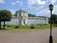 L'orangerie (1761-1764) construite par Argounov n'abritait des orangers, des citronniers, et autres agrumes qu'à la belle saison, car ils étaient cultivés dans des serres, au fond du jardin. Elle servait plutôt de grande salle de banquet d'été. Elle est devenue une salle d'exposition du musée de porcelaine dans les années 1960 et recueille l'une des plus belles collections européennes.