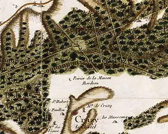 Il se situe sur le bord d'un grand plateau, jadis couvert de forêts qui ont cédé la place à des terres agricoles. La carte de Cassini, postérieure de deux siècles, montre le château entouré d'une vaste forêt, dans une clairière située au carrefour de cinq allées forestières. Ces allées permettaient de gérer l'exploitation forestière, de s'adonner à la chasse, mais aussi de dégager de grandes perspectives sur le château. L'emplacement est alimenté par trois sources à débit annuel, connues depuis très longtemps.