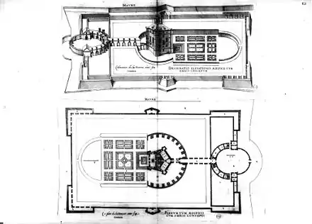 Le seul plan de Maulnes qui nous soit parvenu est celui d'Androuet du Cerceau[6]. Une étude comparée entre ce plan, la gravure de Silvestre, les plans actuels et les données archéologiques, fait ressortir de nombreuses et significatives différences. On peut imaginer qu'Androuet du Cerceau serait entré en possession de plans du projet initial ; qu'il les aurait corrigés à partir d'observations faites à Maulnes entre 1570 et 1573, par lui ou par d'autres ; et qu'enfin il aurait anticipé l'achèvement de travaux en cours ou même seulement prévus, tout cela avec un degré d'exactitude plutôt approximatif.