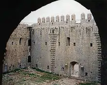 Le centre de cette cour possède un pavage carré plus petit autour duquel on devine que des salles adossées aux murs devaient être construites. L'emplacement d'arches déterminant ces salles est visible dans les murs. La littérature indique que, selon le plan des château des Croisés, le sommet de ces salles aurait dû servir à recueillir l'eau de pluie avant de la stocker dans une citerne. L'interruption des travaux n'a pas permis la réalisation de ces plans.