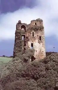 Ce bel édifice médiéval, dressé sur un affleurement rocheux, a un donjon carré encore haut de 28 mètres (probablement était-il haut de 30 à 35 mètres à l'origine), qui en s'écroulant en partie, pendant l'hiver 1995, a mis l'intérieur à nu et révélé une tour habitable à quatre étages, abritant chacun une chambre. On accédait à celui-ci par une porte percée au rez-de-chaussée, condamnée par une herse et le passage protégé par un assommoir. Le dernier niveau était pourvu de hourds[10].