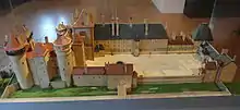 Le château au XIVe siècle était composé du donjon habitable dite « tour Mal-Coiffée », auquel est accolée les restes d'un logis percé de grandes fenêtres en arcs brisés, une grande salle (aula), lieu de la représentation du pouvoir des ducs, ainsi que de quatre bâtiments enserrant une cour intérieure[1]. D'un point de vue défensif, il était intégré aux fortifications de la ville, était également pourvu de fossés, de lices et de tours[1].