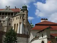 Au XIe siècle, le Wawel devint l'une des principales demeures princières du Royaume de Pologne. Les bâtiments religieux et laïcs s’y développaient parallèlement en adoptant les styles principaux de l’époque : roman, gothique et Renaissance. Durant le règne de Władysław II Jagellon et son épouse Jadwiga, il fut augmenté en taille, avec l'addition de la tour "Pied de Poule" (Kurza Stopka) et la Tour Danoise[1].