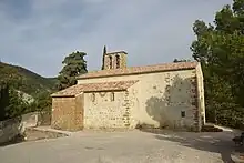 - Chapelle Saint-Quentin[3] : édifice médiéval. La chapelle était entourée d'un cimetière qui a désormais disparu. Elle est orientée et composée d'une nef voûtée et d'un chœur semi circulaire, voûté en cul de four. L'originalité de cette chapelle tient aux marques lapidaires des pierres de la porte et d'une des fenêtres occidentales. Certaines marques, très profondément creusées, ne semblent pas être des marques de tâcheron. Sur une pierre de la fenêtre, un homme a été représenté. Certains ont voulu y voir un orant, d'autres un guerrier bogomile[réf. nécessaire].