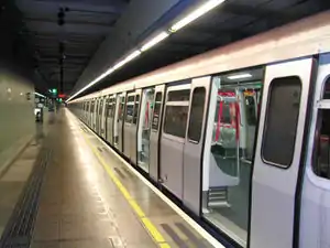 Train du MTR Train prêt au départ à la station Chai Wan.