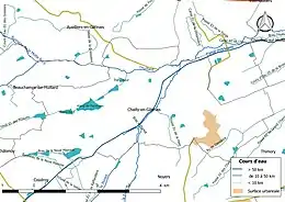 La commune est traversée par le Canal d'Orléans (5,454 km). Le réseau hydrographique communal, d'une longueur totale de 25,27 km, comprend quatre autres cours d'eau notables, la Poterie (3,258 km), le Pontet (0,862 km), l'Huillard (3,195 km) et le Ruisseau de la Motte (2,515 km), et divers petits cours d'eau dont le ru de Dandelot (2,58 km), le ruisseau de la Noue-Mazone (0,717 km), un bras de la Noue Mazone (0,749 km), un bras du Pontet (0,032 km), un bras de l'Huillard (0,105 km), l'écluse de la Vallée (0,018 km), le fossé 01 de la Haie (1,703 km), le fossé 01 des Charriers (1,083 km) et le fssé 01 des Poucets (2,997 km)[8].