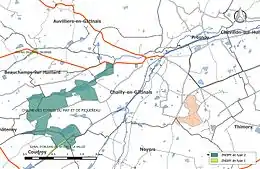 | « Canal d'Orléans du Hateau à la vallée » | type 1[Note 1] | 4 hectares | s'étend sur 3 communes (Chailly-en-Gâtinais, Coudroy et Noyers). Il s'agit d'une portion du canal d'Orléans, située entre l'écluse de la Vallée et l'écluse du Hateau[DREAL 1]. Son altitude est de 100 m[INPN 2]. Le site abrite une population très importante d'Hydrocharis morsus-ranae, espèce rare en région Centre-Val de Loire. C'est donc ici le nombre particulièrement important (une des plus belles populations de la région, voire la plus belle) d'individus qui motive la reconnaissance du site en ZNIEFF de type 1[INPN 3]. | ![]() Carte des ZNIEFF de la commune et de ses abords. |