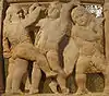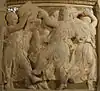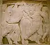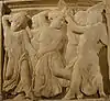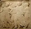 | 1 | ![]() | Le premier bas-relief de gauche est caractérisé par des citations et rythmes classiques, avec un picturalisme raffiné, moins dynamique et tendu que les bas-reliefs centraux. |