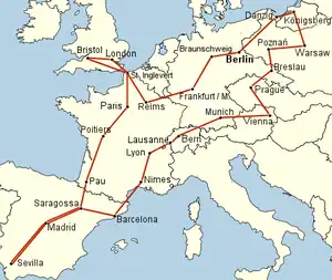 La première partie du concours consistait en un rallye de 7560 km sur l’Europe selon le parcours Berlin – Brunswick – Francfort-sur-le-Main – Reims – Saint-Inglevert – Bristol – Londres – Saint-Inglevert – Paris – Poitiers – Pau – Saragosse – Madrid – Séville – Saragosse – Barcelone – Nîmes – Lyon – Lausanne – Berne – Munich – Vienne – Prague – Breslau – Poznań – Varsovie – Königsberg – Danzig – Berlin.