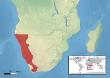 Cette espèce se rencontre en Afrique du Sud, en Namibie et dans le sud de l'Angola[2].