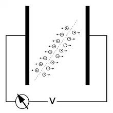 Dans un détecteur à ionisation, le milieu est plongé dans un champ électrique généré par une paire d'électrodes, généralement de géométrie cylindrique ou plane. Les électrons nouvellement créés se déplacent vers l'anode et les ions, vers la cathode. Selon le type d'effet voulu, l'anode peut prendre la forme d'un ou plusieurs fil très fin près duquel le champ électrique devient très intense et où les électrons sont accélérés jusqu'à être capables d'ioniser d'autres atomes, créant des électrons secondaires, capables à leur tour d'ioniser des atomes, ceci plusieurs fois de suite. C'est le phénomène d'avalanche.