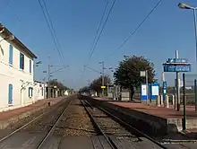 La commune est traversée du nord au sud par la ligne de Pontoise à Creil, parallèle à l'Oise, desservie également par des trains de la relation gare de Paris-Nord - Persan-Beaumont par Valmondois. Les trains des deux relations font partie de la ligne H du Transilien. Jusqu'à quatre trains par heure permettent de relier Paris ou d'en revenir pendant les heures de pointe. Tous les trains s'arrêtent en gare de Champagne-sur-Oise, située dans la zone 5 des transports en commun d'Île-de-France. Le temps de parcours est de 3 min pour Persan-Beaumont et de 52 min pour Paris. Des communications plus rapides sont possibles en changeant de train à Persan-Beaumont, avec emprunt d'un TER Hauts-de-France sans arrêt entre cette gare et Paris-Nord[6].