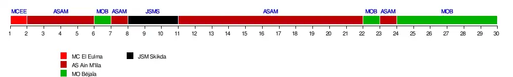 | 1 | MO Béjaïa R | 60 | 30 | 4 | +22 |