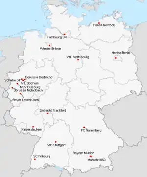 | VfL Bochum | Ruhrstadion | 31 328 | Bochum |
