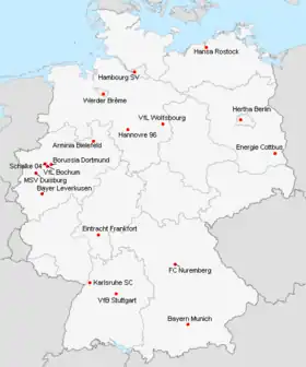 | Schalke 04 | Veltins-Arena | 61 673 | Gelsenkirchen |