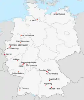 | Rot-Weiss Oberhausen | Niederrheinstadion | 21 318 | Oberhausen |