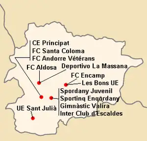 En raison du peu de nombre de stades se trouvant sur le territoire d'Andorre, les matchs sont joués exclusivement à l'Estadi Nacional d'Aixovall d'une capacité de 1 500 places.