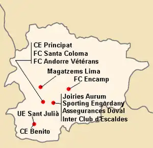 En raison du peu de nombre de stades se trouvant sur le territoire d'Andorre, les matchs sont joués exclusivement à l'Estadi Nacional d'Aixovall d'une capacité de 1 500 places.