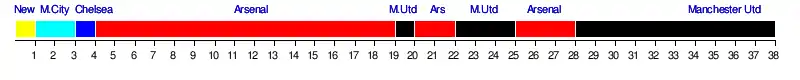 | Arsenal | 1-1 | 1-1 | 2-0 | 2-0 | 1-0 | 5-0 | 1-0 | 2-1 | 1-1 | 1-0 | 2-2 | 1-1 | 3-0 | 3-1 | 2-0 | 3-2 | 2-1 | 2-0 | 2-0 | |